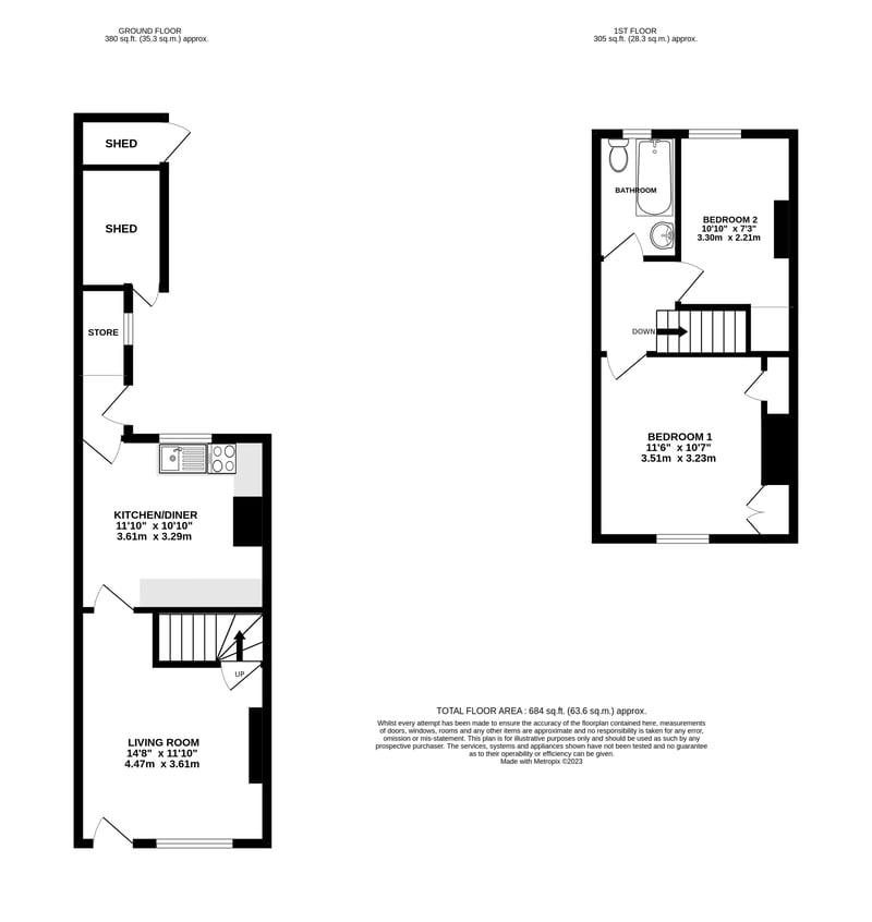 To the front is an area for parking off road, shared with neighbouring cottages. At the rear is a courtyard style garden with rear access gate, space for pots and plants, two useful stores for storing hobby equipment, bikes and/or kayaks.