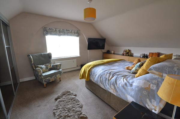 Double glazed window to side with views to the fells, double radiator, built in wardrobes along one wall with sliding doors
