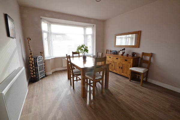 Double glazed bay window to front with blinds, space for table and chairs, double radiator, wood style flooring, open into kitchen