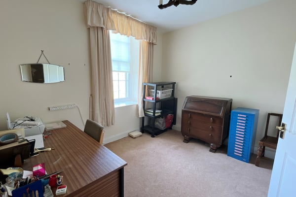 A generous room with window to front and lovely views out over gardens, radiator, space for table and chairs