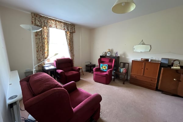 A generous room with window to front and lovely views out over gardens, radiator, space for table and chairs