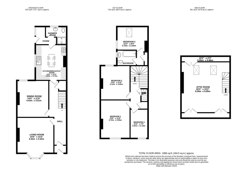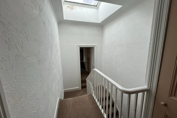 Doors to rooms, opening on half landing leading to bedroom 3 and bathroom, Velux window to rear, door to stairs leading up to attic room, two storage cupboards