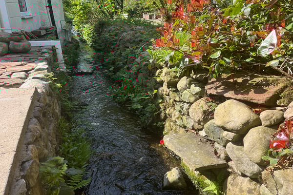 Charming courtyard garden with stream at the rear