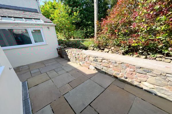 Charming courtyard garden with stream at the rear