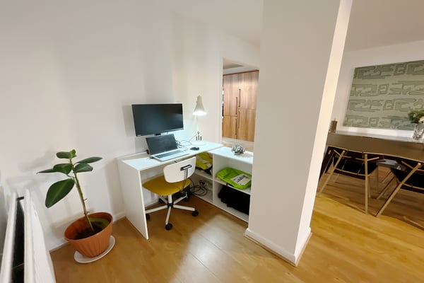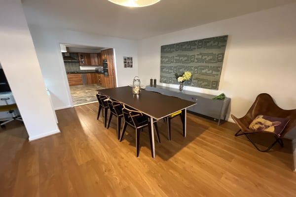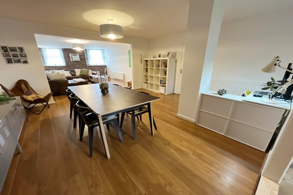 Another generous room with space for large table and chairs, separate area for study desk, double radiator, wood style flooring, opening into kitchen