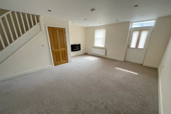 Double glazed window to rear with blinds, part double glazed door to rear, two double radiators, electric wall mounted fire, under stairs storage cupboard, stairs to first floor, opening into kitchen