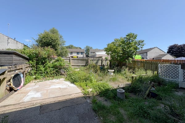 The rear garden includes two useful inset storage sheds, hardstanding for greenhouse or patio, the rest is ready for cultivation