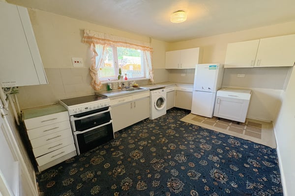 Fitted cupboards and work surfaces, space for cooker, fridge freezer and washing machine, double glazed window to rear, single drainer sink unit, wall mounted combi boiler, door to pantry with window to rear