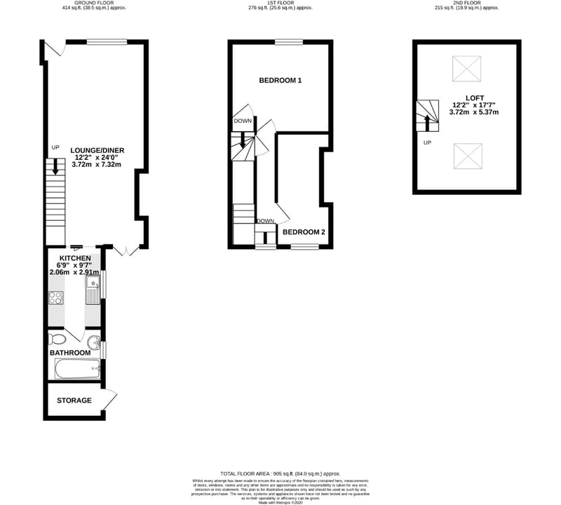 Double glazed uPVC window to rear, doors to bedrooms and stairs rising to loft room.