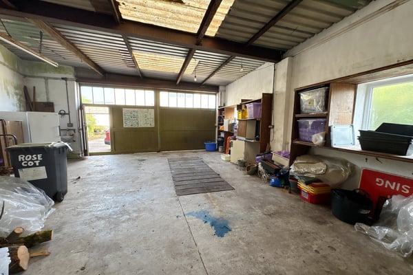 To the side of the property there is a large garage building with sliding entry doors that will accommodate four vehicles with ease. It includes an inspection pit for car maintenance, power and light, window to side and steps that lead up to a workshop with its own exit door to rear. Perfect for vehicle based hobbies, wood turning or pottery hobbies.