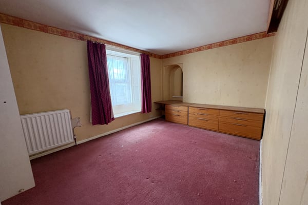 Two windows to side, door to walk-in wardrobe further door into en-suite