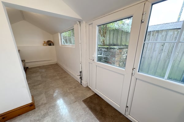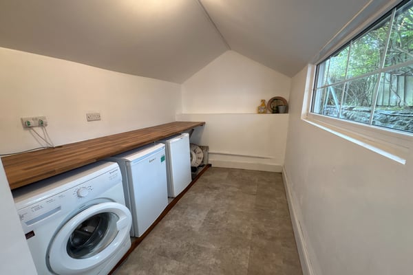 A large area with two double glazed windows to side, part double glazed door to garden, space for washing machine, fridge and freezer with worktop over. Space for bikes/hobby equipment