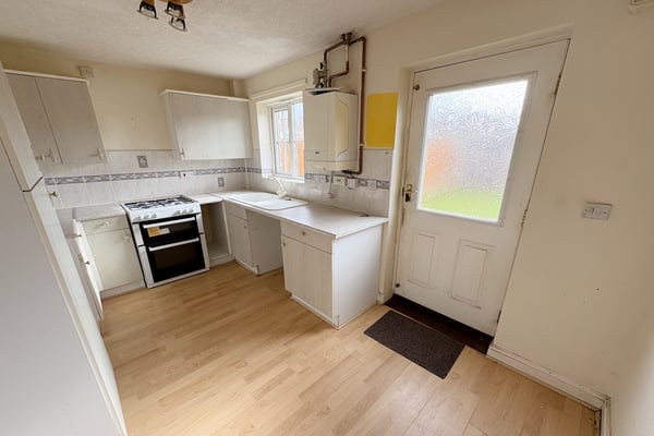 Double glazed window to rear, part double glazed door to garden, fitted base and wall units with worktops, single drainer sink unit, tiled splashback, fitted gas cooker, space for fridge freezer and washing machine, wall mounted boiler, double radiator