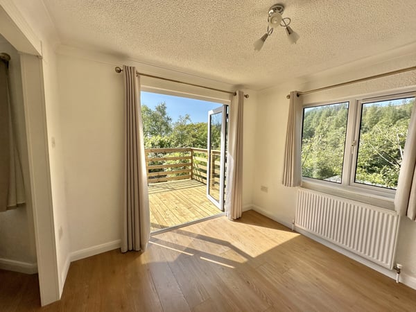 Another double aspect room with double glazed French doors onto veranda and double glazed window to side, radiator, coved ceiling, wood style flooring