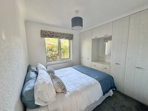 A double bedroom with double glazed window to side, radiator, wardrobes along one wall